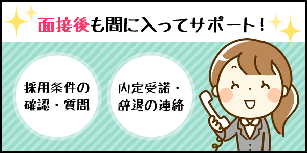 追加質問、条件内容の確認、お返事タイミングの調整、受諾or辞退の挨拶など全てお任せください。